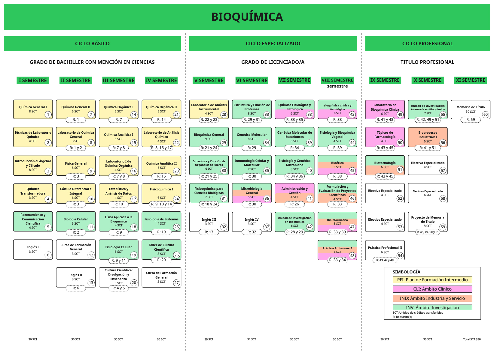 El grado académico de bachiller general con mención en ciencias se obtendrá acorde al cumplimiento de los 120 SCT de los primeros cuatro semestres, según los siguientes planes formativos: