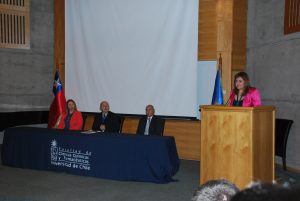 Acompañado por la Directora de la Escuela de Pregrado, Prof. Soledad Bollo, y por el Secretario de Estudios, Prof. Alejandro Bustamante, en su discurso, el Vicedecano, Dr. Javier Puente, señaló que "hace algunos años cada uno de Ustedes tomó la decisión de iniciar el recorrido de una carrera en particular. Sin embargo, cada uno de estos caminos propios, nacen y comparten una avenida en común, que es la Química.