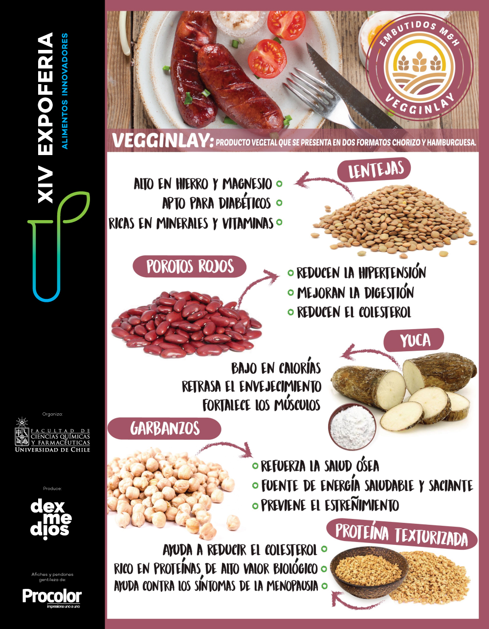Este evento tiene una destacada trayectoria y en su 14o versión presentará los prototipos de alimentos innovadores, que han sido desarrollando en forma sistemática durante un semestre. Es una iniciativa de docencia de Ingeniería de Procesos de Conservación de Alimentos, basada en competencias, orientada al perfil profesional, a la innovación y el emprendimiento y que está a cargo de la profesora Lilian Abugoch. Se trata de los productos: Veganitos, fajita vegana libre de gluten; Golden Bar, barrita saludable para niños y adultos; VeggiPota, compota de frutas y verduras; Lucherry, bebida de té helado; Brounchi, snack dulce tipo brownie hecha de piñones y palta negra; Vegginlay, embutido vegetal; Casnack, snack frito de castañas; CrutSoup, sopa instantánea de verduras liofilizadas con crutones; Dip Sea, salsa untable apta para intolerantes a la lactosa, caseína y celiacos.