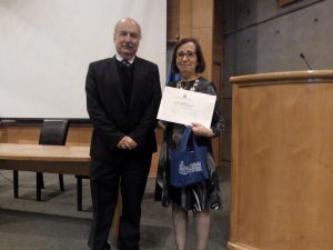 La profesora María Cristina Melendo fue reconocida también por la profesora Edda Costa, directora del Depto. de Ciencias y Tecnología Farmacéutica, quien le obsequió un ramo de flores en nombre de la unidad. La profesora Costa alabó la cordialidad y amabilidad de la profesora homenajeada, lo que fue compartido por la audiencia con un merecido aplauso.