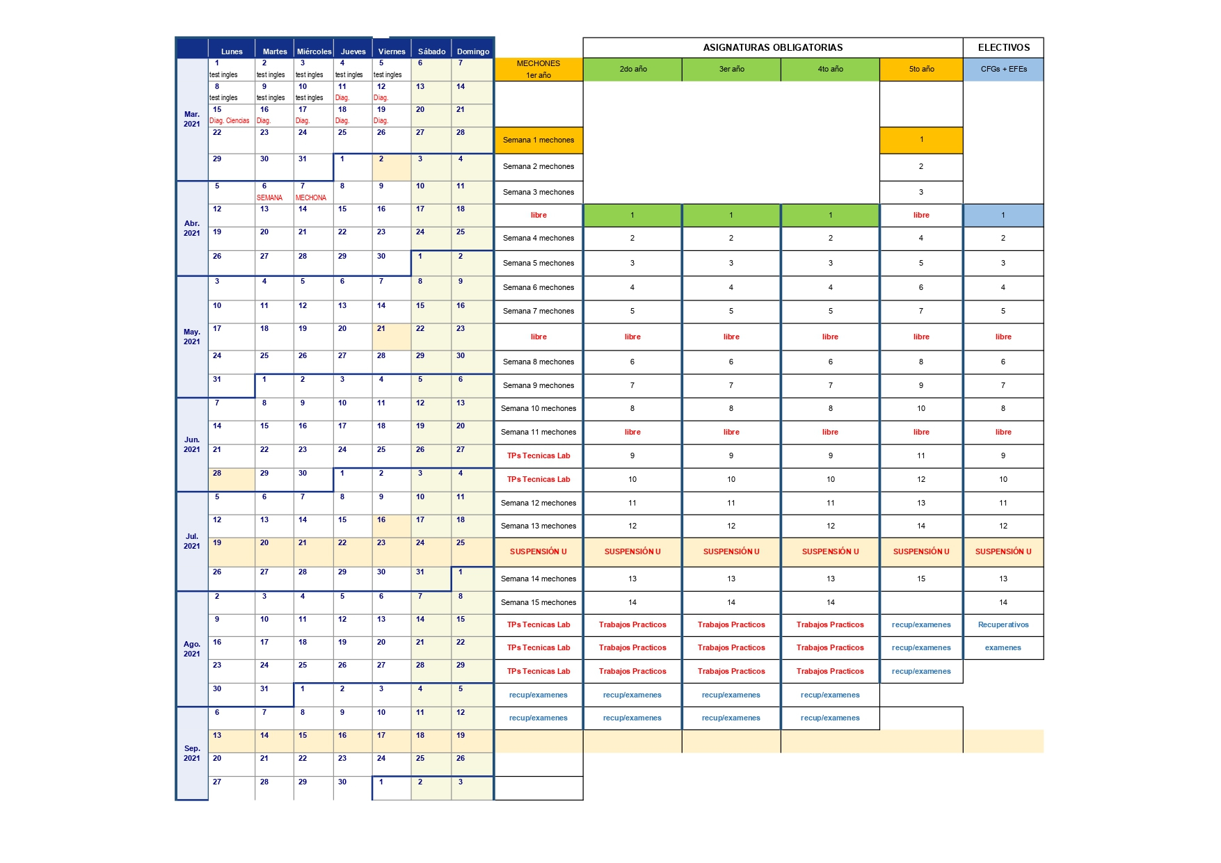 La Escuela de Pregrado informó (12 mayo 2021) la actualización del Calendario semanal del primer semestre 2021, el que fue modificado de acuerdo al Decreto Universitario 11921 enviado por el Rector de la Universidad que "DISPONE SUSPENSIÓN EXCEPCIONAL DE ACTIVIDADES UNIVERSITARIAS ENTRE LOS DÍAS 19 Y 23 DE JULIO DE 2021 Y ENTRE LOS DÍAS 13 Y 17 DE SEPTIEMBRE DE 2021", que también se adjunta.