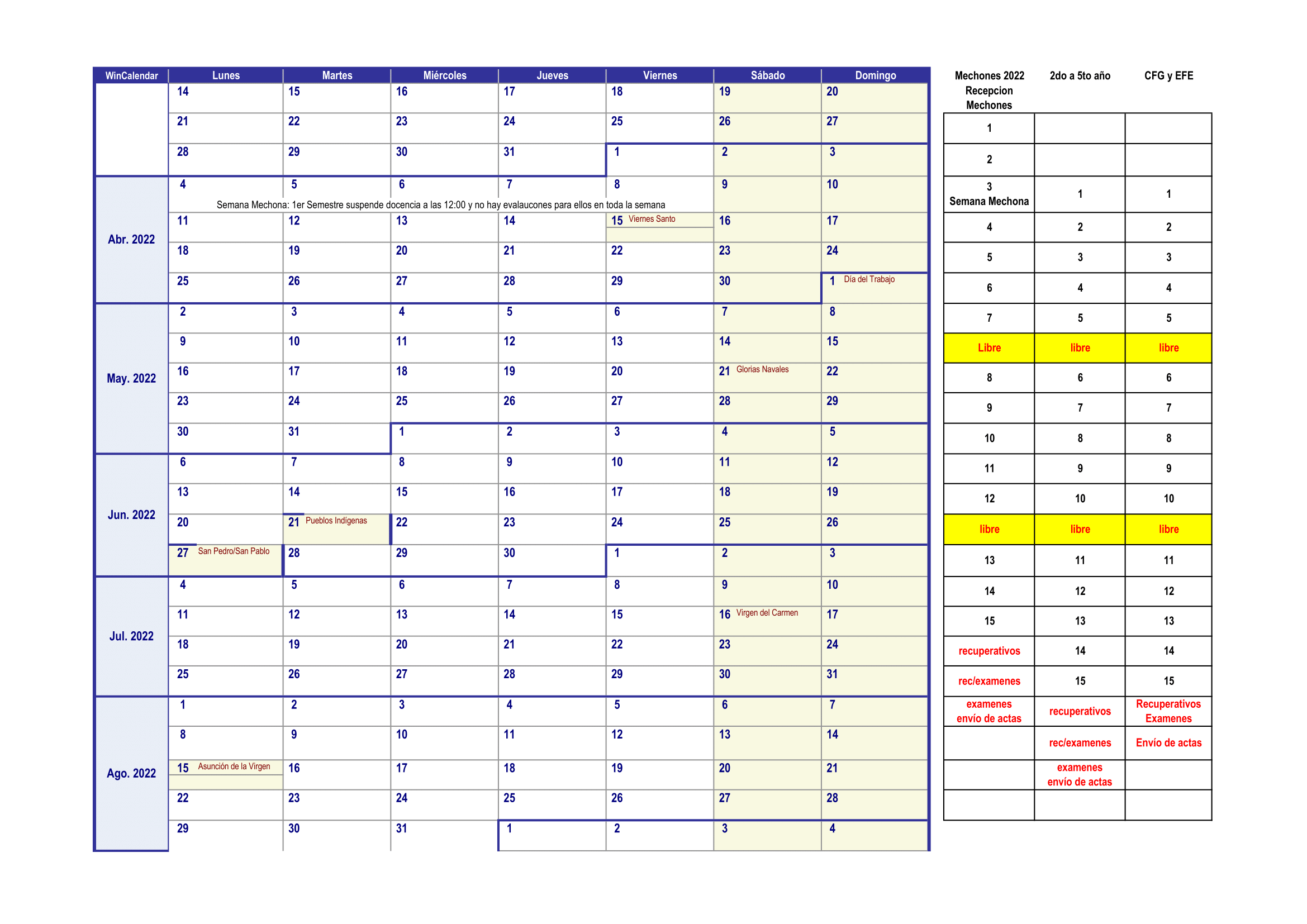 La Escuela de Pregrado informa Calendario Académico Semestre Otoño 2022, aprobado por el Consejo de Escuela de la Facultad de Ciencias Químicas y Farmacéuticas de la Universidad de Chile.