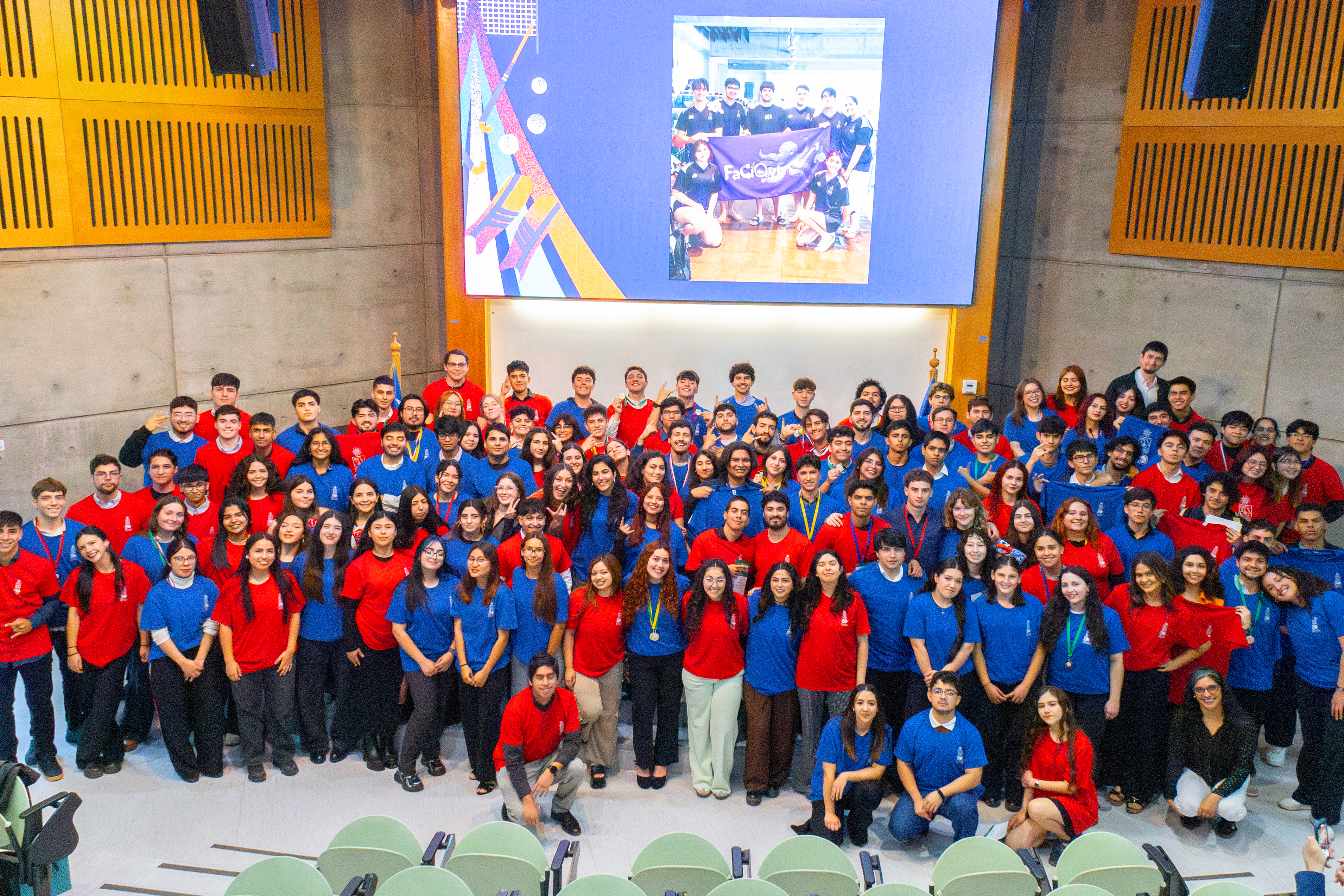 El pasado viernes 12 de diciembre se realizó la Ceremonia de Premiación Deportiva 2025 en el Aula Magna Prof. Irma Pennacchiotti Monti. La mesa de honor estuvo presidida por el decano Prof. Pablo Richter, acompañado de la vicedecana Prof. Paz Robert y la directora de la Escuela de Pregrado Prof. Lorena García.