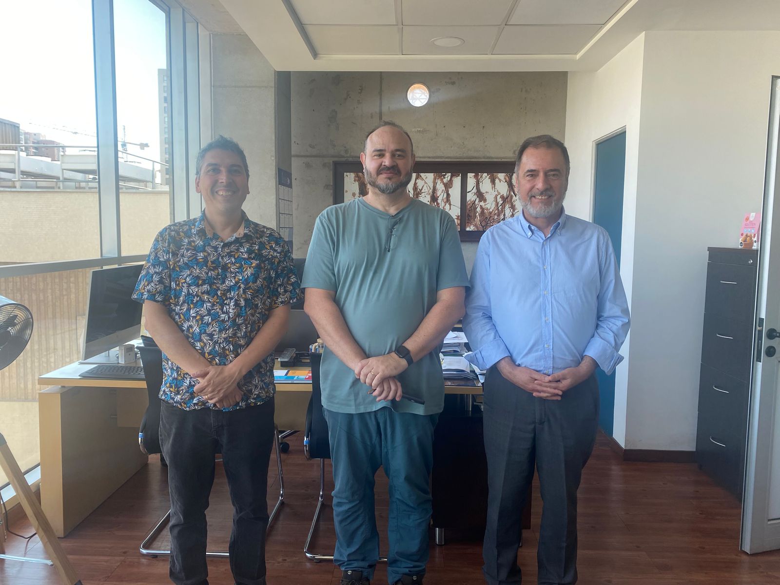 Durante su visita, el Prof. Santos se reunió con el Prof. Christian Wilson, director de Relaciones Internacionales, y Rebeca Pineda, secretaria ejecutiva de la Dirección, con quienes dialogó sobre posibles vínculos académicos y de investigación. La Dirección de Relaciones Internacionales de la Universidad coordinó su visita en conjunto con la misma unidad de nuestra facultad. Además, junto a los profesores Luis Puente y Catalina Landeta, recorrió las instalaciones de docencia e investigación asociadas al Departamento de Ciencia de los Alimentos y Tecnología Química, donde conoció los laboratorios especializados en: